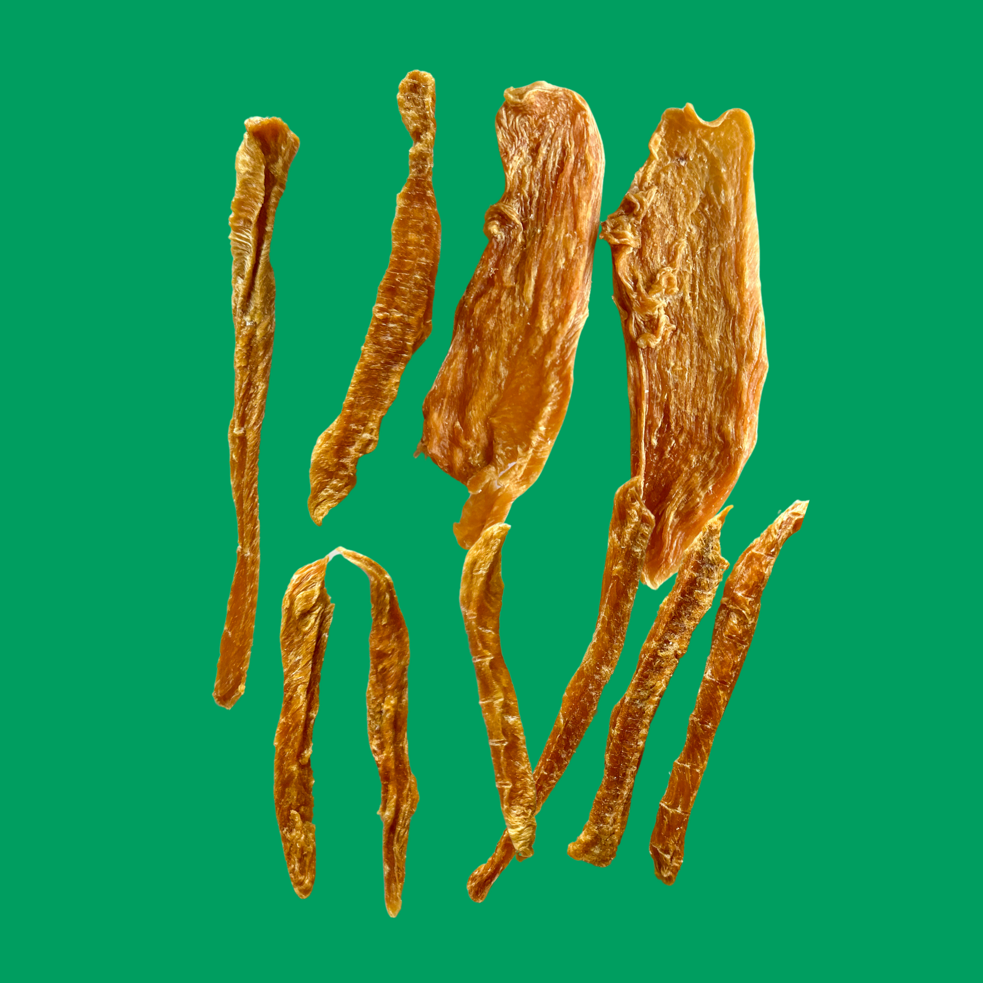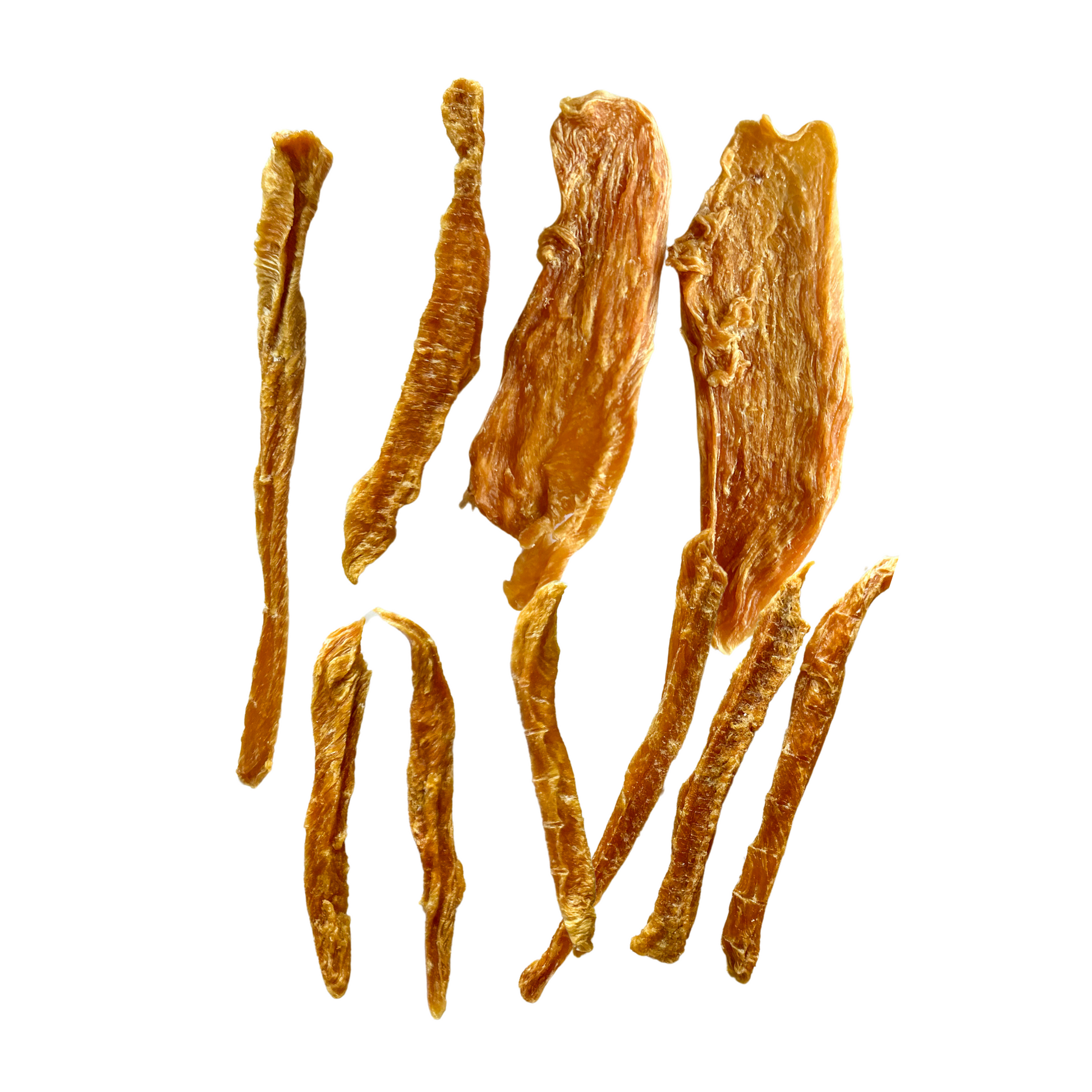 Now 3oz! This high-value, single-ingredient treat is made from USDA human-grade chicken breast, hand-cut into strips of various sizes and gently dehydrated for maximum flavor and nutrition. Dogs love the chewy texture, and pet parents love the simple, clean ingredients.