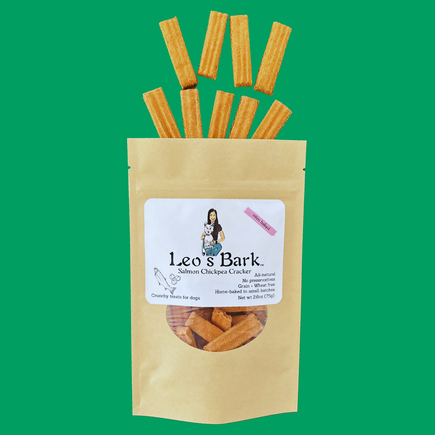 Made entirely from scratch using just two human-grade ingredients—wild-caught Alaskan salmon and chickpea flour—these crackers are a simple, flavorful treat your dog will go wild for. Each one is crunchy, fish-forward, and carefully handmade in small batches in Dallas, TX.
